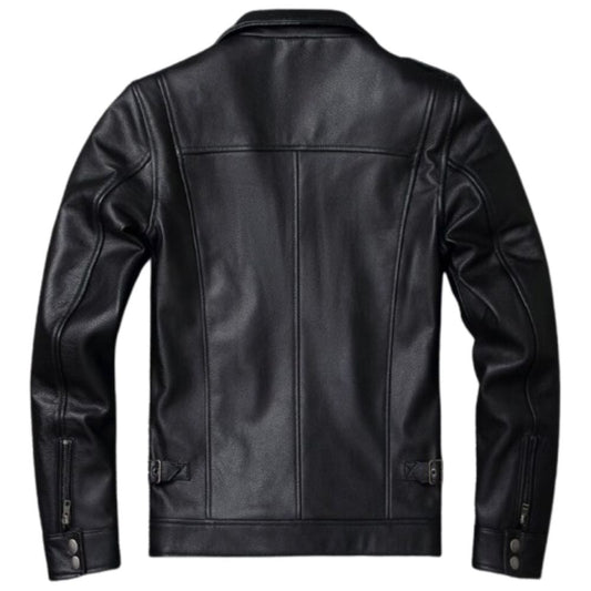 Men's Classic Black Stand-Up collar slim-fit Genuine Leather Jacket