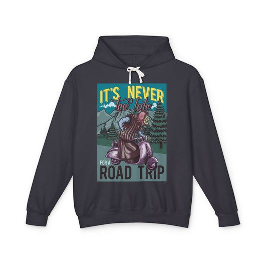 Road Trip Its Never Too Late Casual Wear - Unisex Lightweight Hooded Sweatshirt