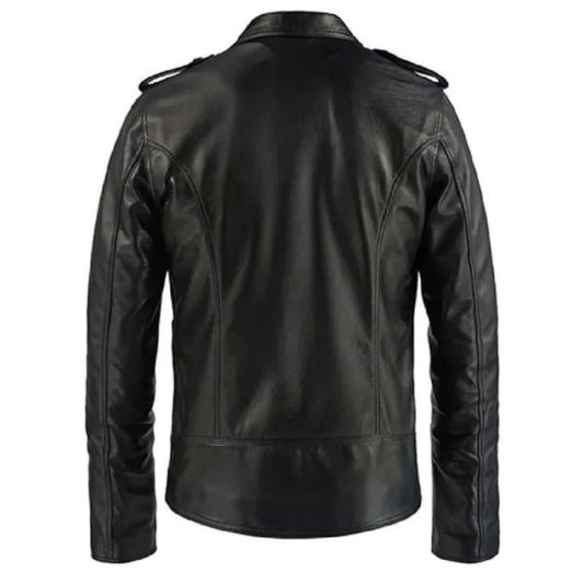 Men's Solid Black Slim-Fit Genuine Sheepskin Leather Coat