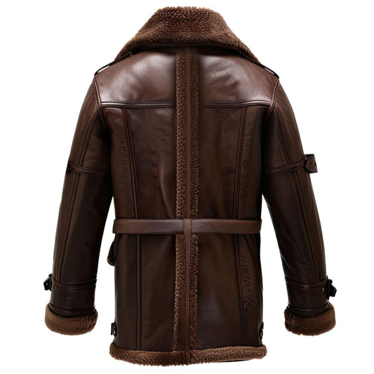 Men's Dark Brown Faux Shearling Fur Flight Cowhide Leather Coat