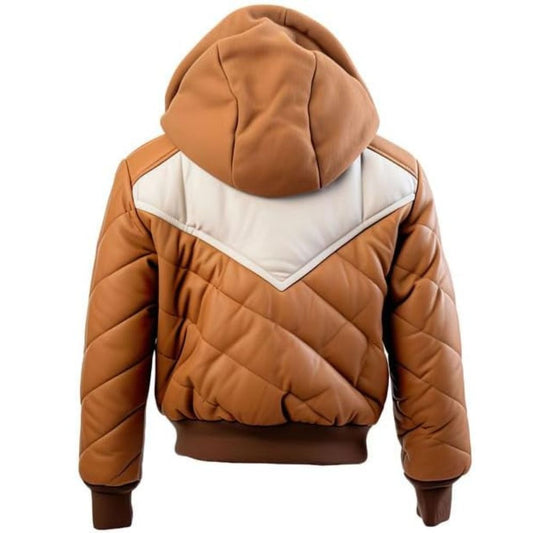 Men's Brown Genuine Sheepskin Quilted Hooded Bomber Leather Jacket