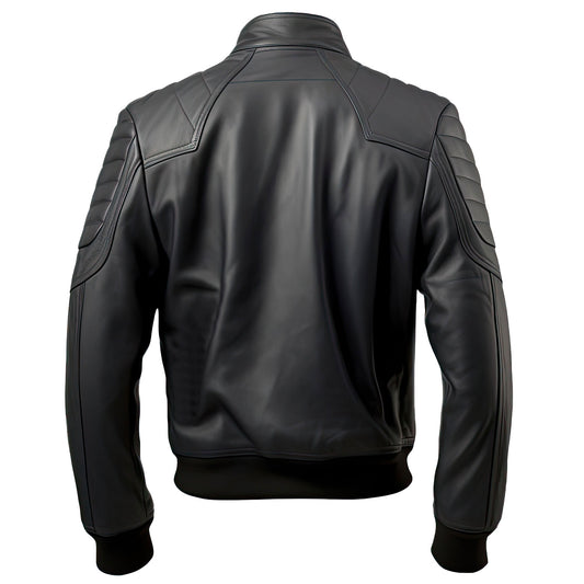 Men's Black Blue Genuine Sheepskin Quilted Bomber Biker Leather Jacket
