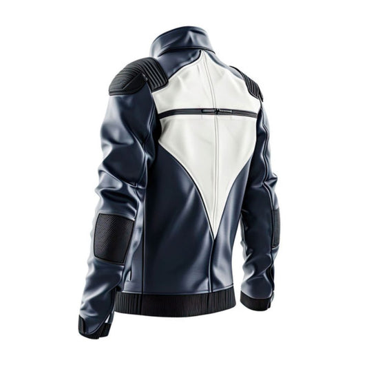 Men’s Navy Blue Grey Genuine Sheepskin Quilted Biker Leather Jacket