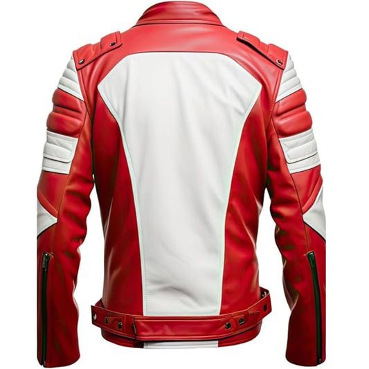 Men's Red Café Racer Genuine Sheepskin Motorcycle Leather Jacket