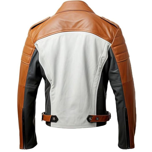 Men's White-Brown Contrast Outerwear Genuine Sheepskin Leather Jacket