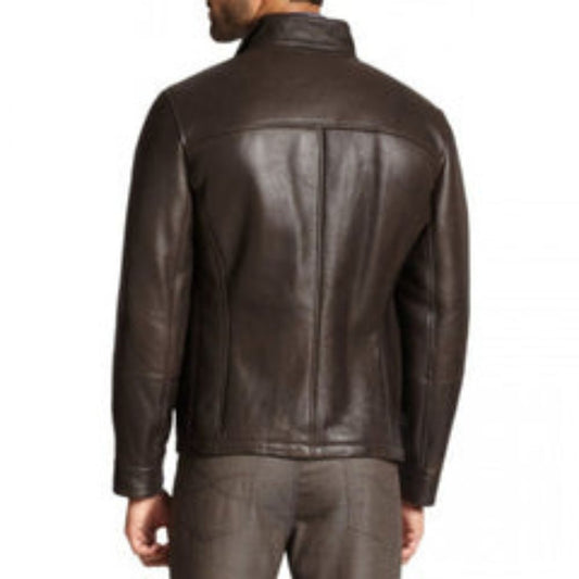 Men's Coffee Brown Genuine Lambskin Front Flap Pockets Leather Jacket