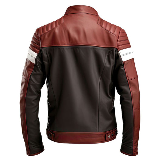 Men's Red with Black/White Cafe Racer Motorcycle Genuine Sheep Skin Leather Jacket