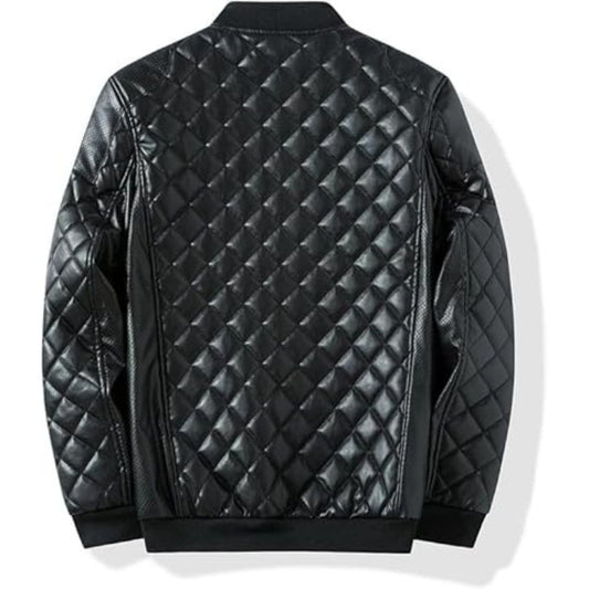 Men's Maroon Quilted genuine Sheepskin Biker Leather Jacket