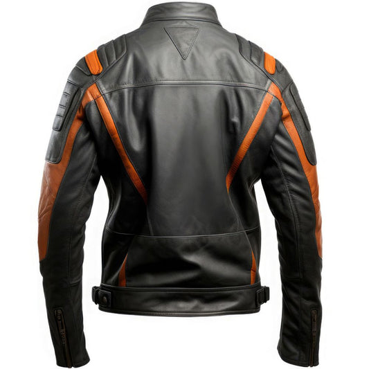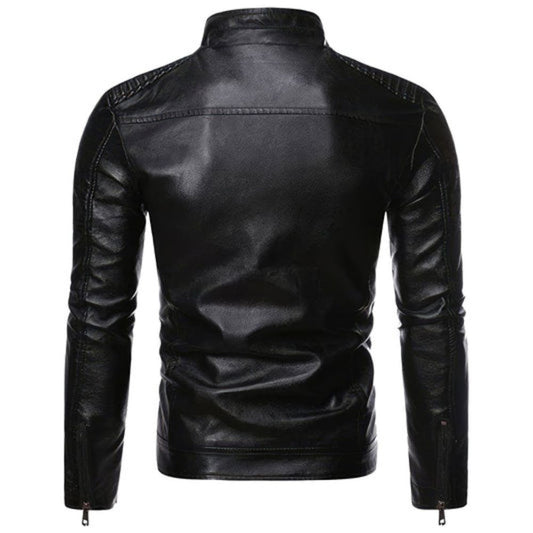 Men’s Black Moto-Racer Stand-up Collar Premium Leather Jacket