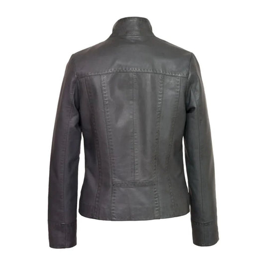 Women's Black Stab-Stitch Style Genuine Sheepskin Racer Leather Jacket