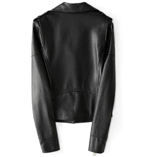 Women's Classic Belted Black Biker Genuine Sheepskin Leather Jacket