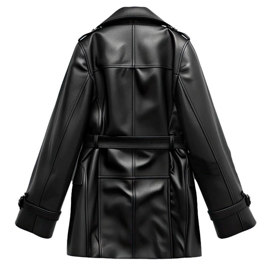 Women’s Black Double-Fronted Belted Genuine Sheepskin Leather Coat