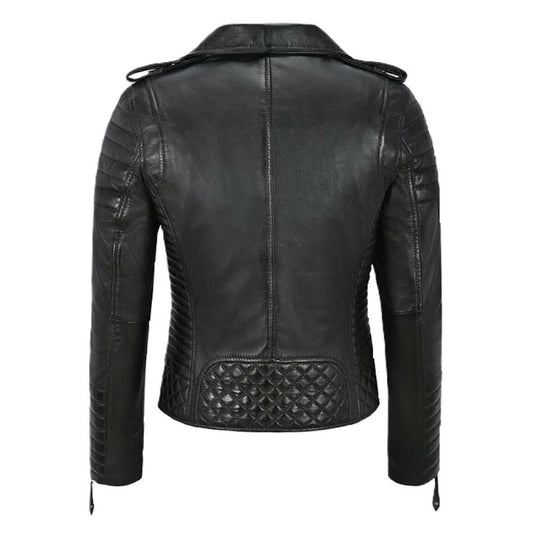Women’s Premium Asymmetrical Brando Black Sheepskin Biker Leather Jacket