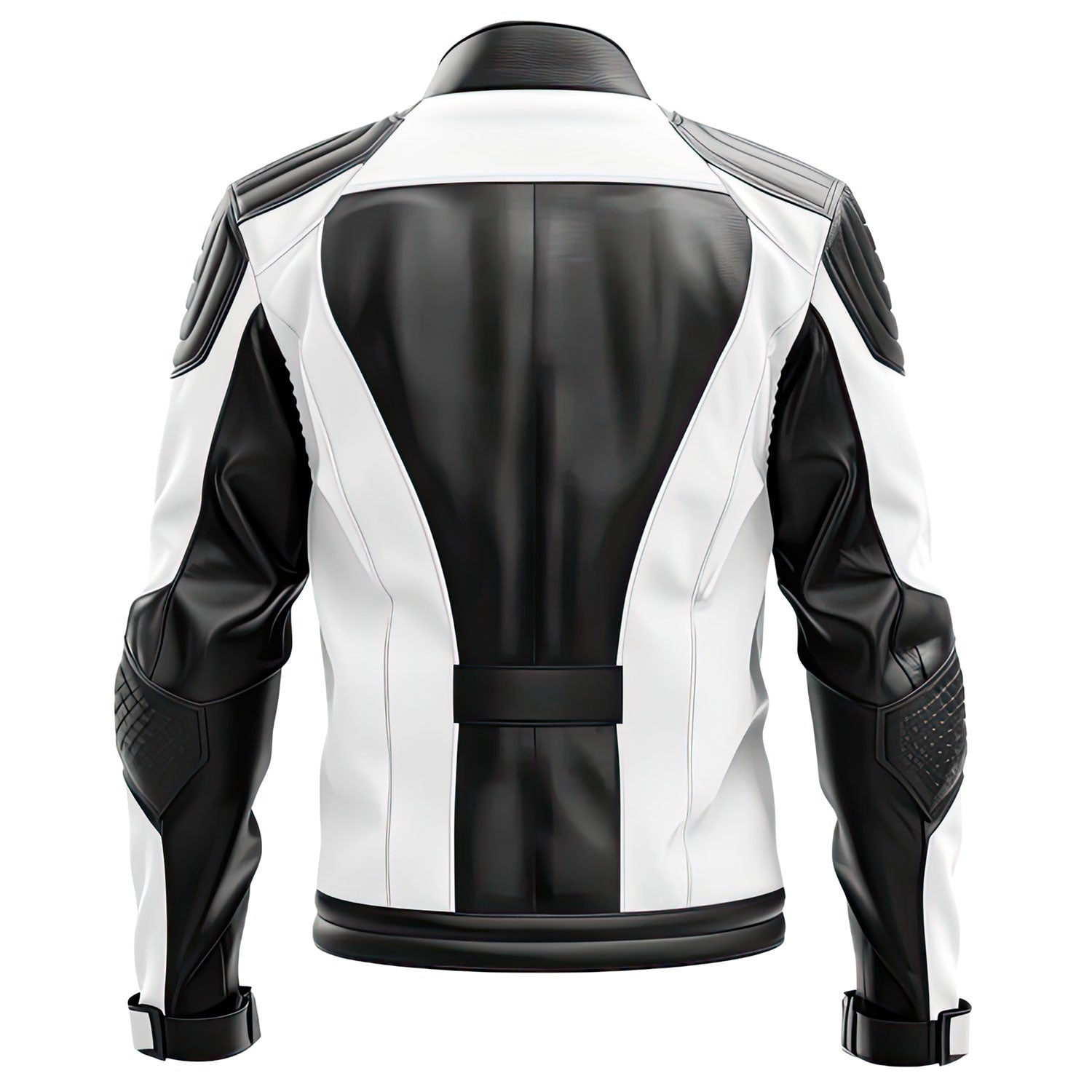 Men’s White-Black Genuine Quilted Sheepskin Moto Leather Jacket