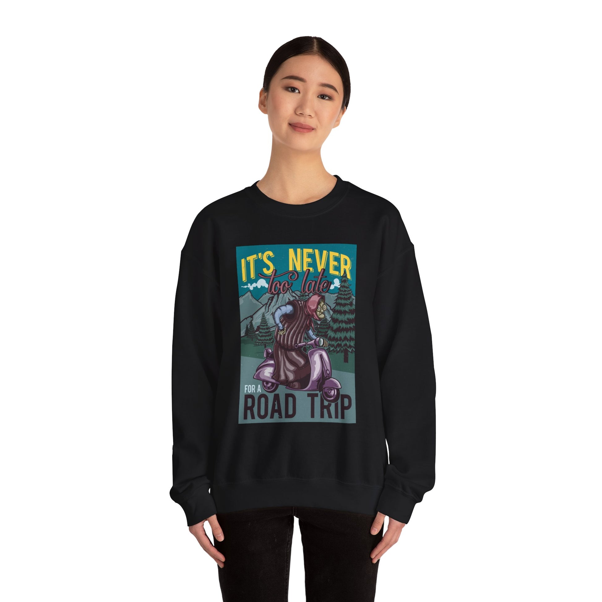 Road Trip Its Never Too Late Unisex Heavy Blend™ White Sweatshirt