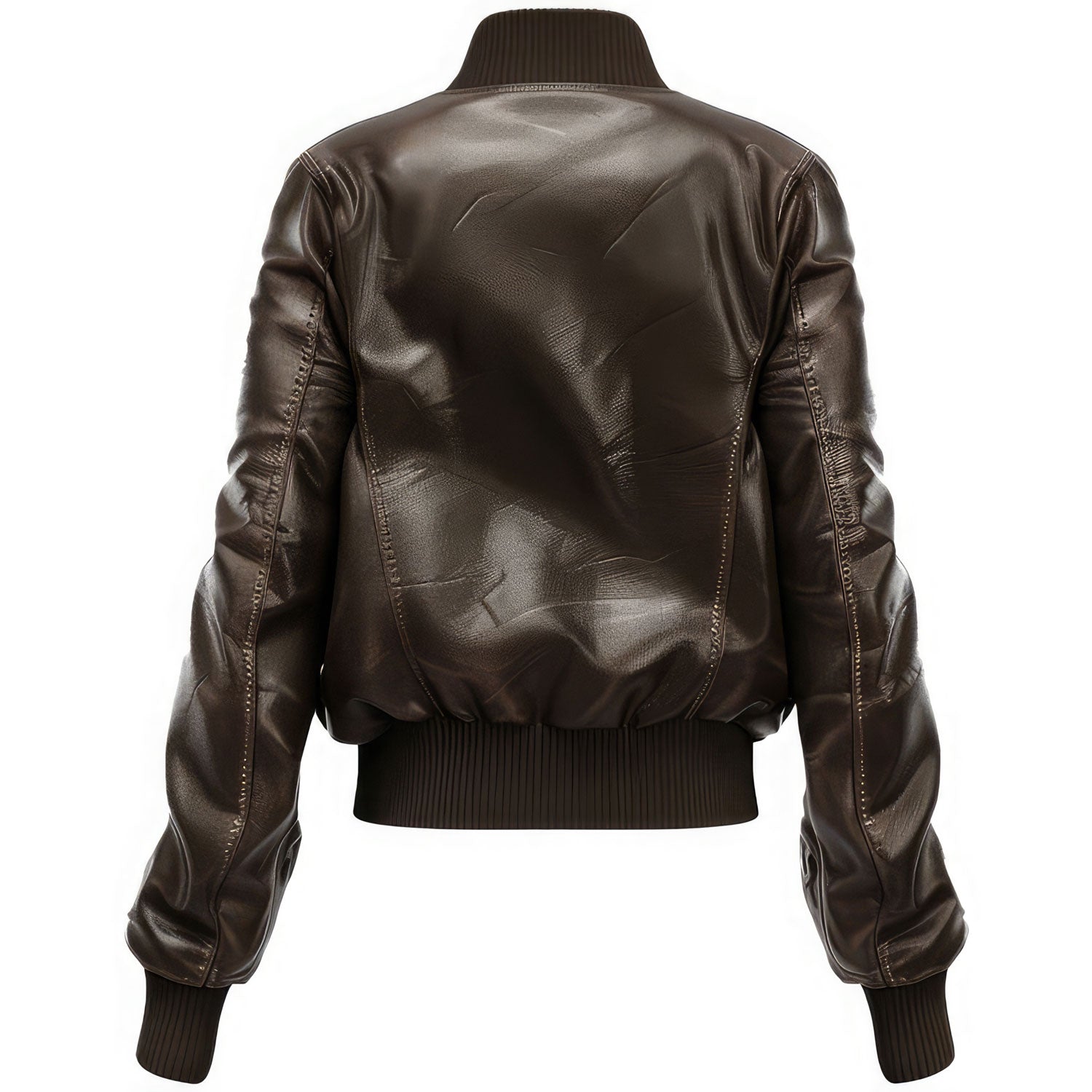 The full-zip front, ribbed knit collar, cuffs, and hem do give it a sporty feel, but it's the rich brown that seems to evoke sophistication. Over a sweater, it really layers beautifully, and against jeans and a tee will make you look great, time and time again.This bomber is a classic leather piece for years to come.