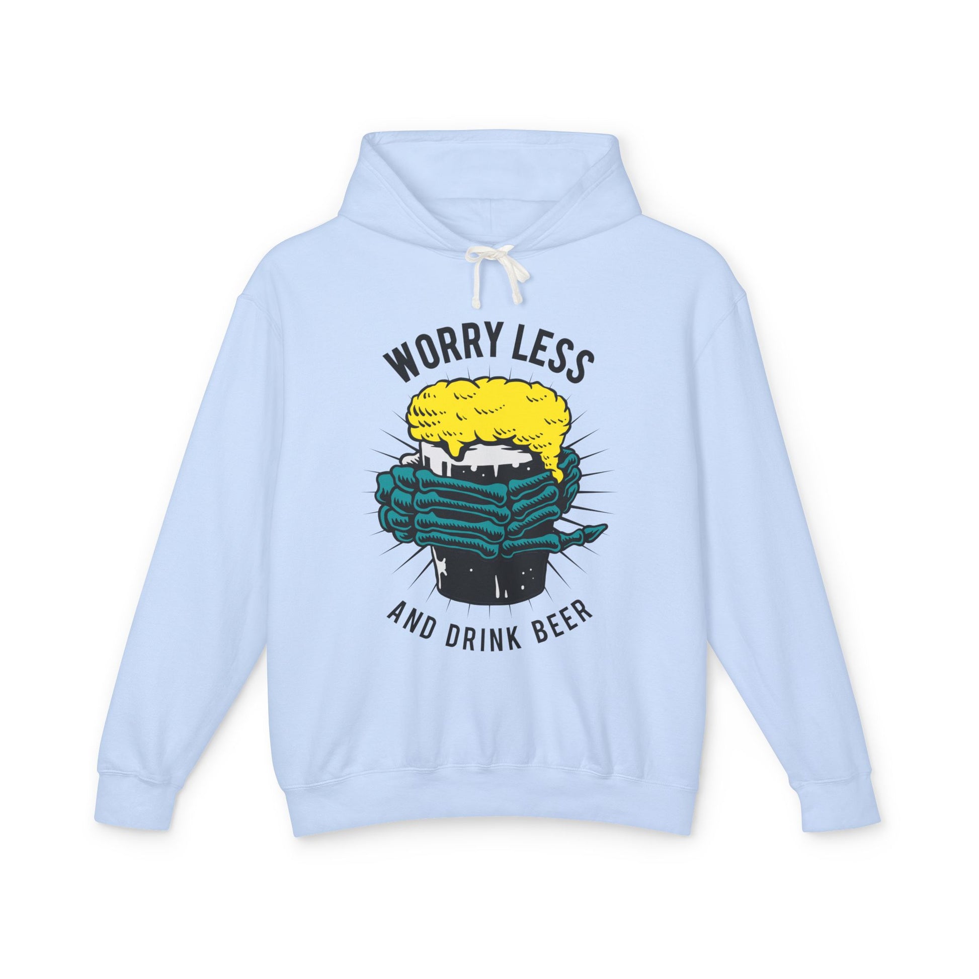 Worry Less Drink Beer Casual Wear - Unisex Lightweight Hooded Sweatshirt